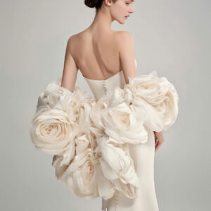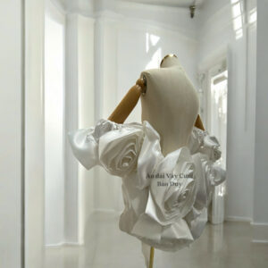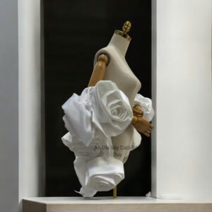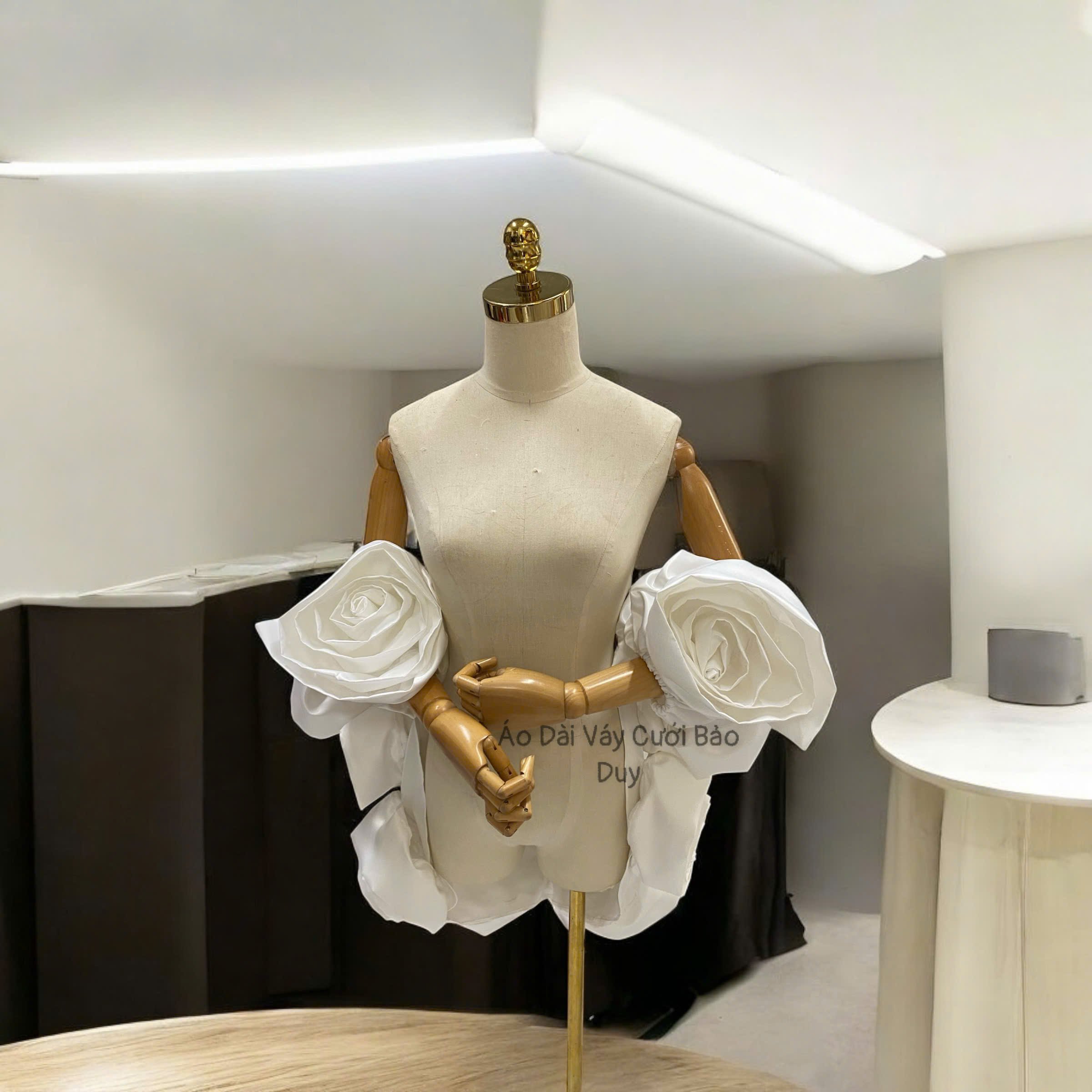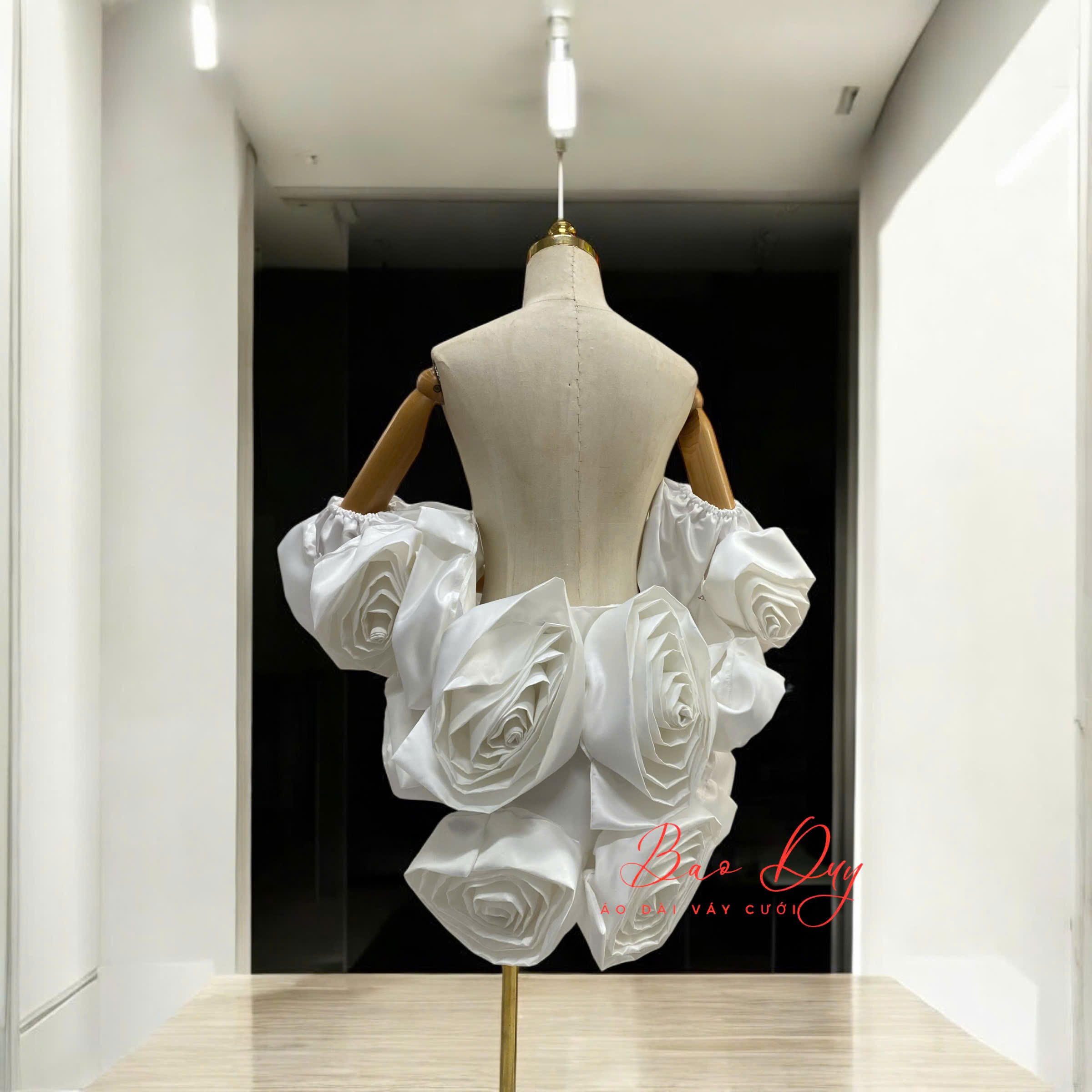ÁO CHOÀNG HOA HỒNG CUỘN VẢI TAFTA CHỤP ẢNH HỎI CƯỚI SỰ KIỆN