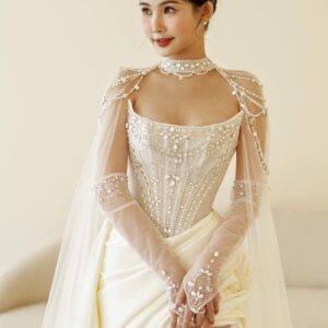 áo choàng vòng cổ hacchic và bao tay cưới cô dâu- váy cưới đuôi cá cúp ngực-phụ kiện cưới Cần Thơ