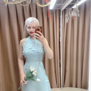 Hãy là người đầu tiên nhận xét “Áo dài cổ yếm xanh min cover Lynn design”
