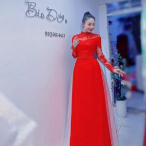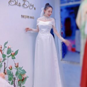 Hãy là người đầu tiên nhận xét “Áo dài cưới vải Tafta phối ren lưới ngực tay”