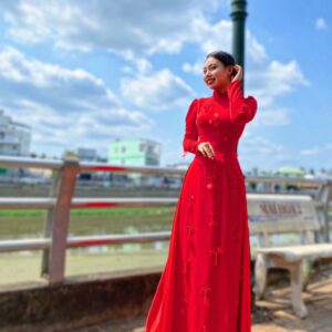 áo dài đỏ cưới hỏi cao cấp