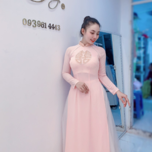 Áo dài hỏi cưới Hồng chữ Hỷ