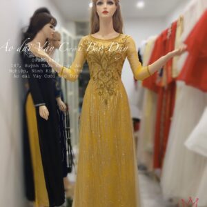 Hãy là người đầu tiên nhận xét “Áo dài mẹ cổ tròn màu vàng tay lỡ đính kết cao cấp”