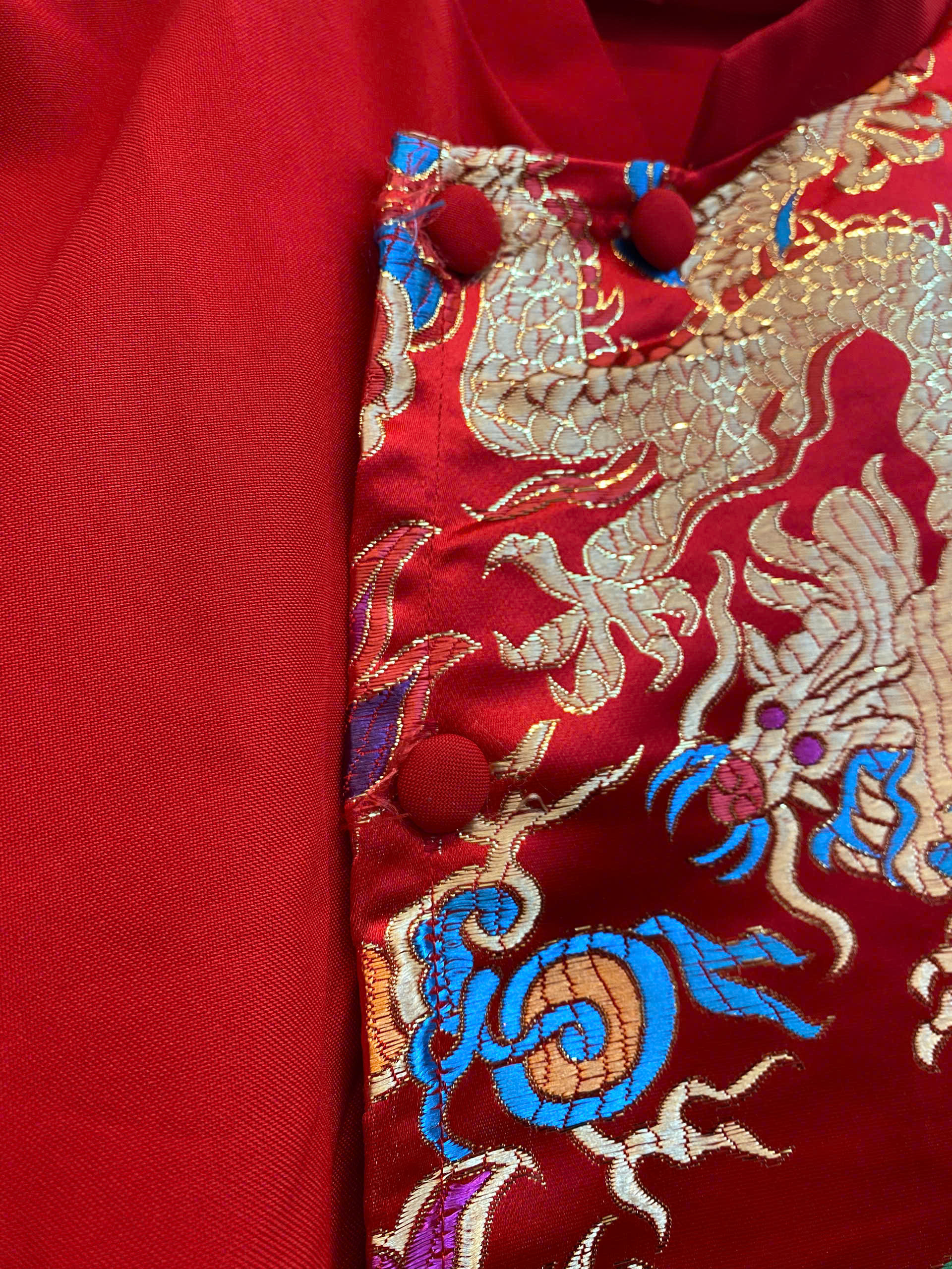 Mẫu áo dài nam họa tiết rồng thêu/ép nổi kết hợp gấm cao cấp mang đậm khí chất mạnh mẽ, quyền uy và may mắn. Chất vải đứng form, dày dặn vừa phải, lên dáng sang trọng nhưng vẫn thoải mái khi di chuyển.