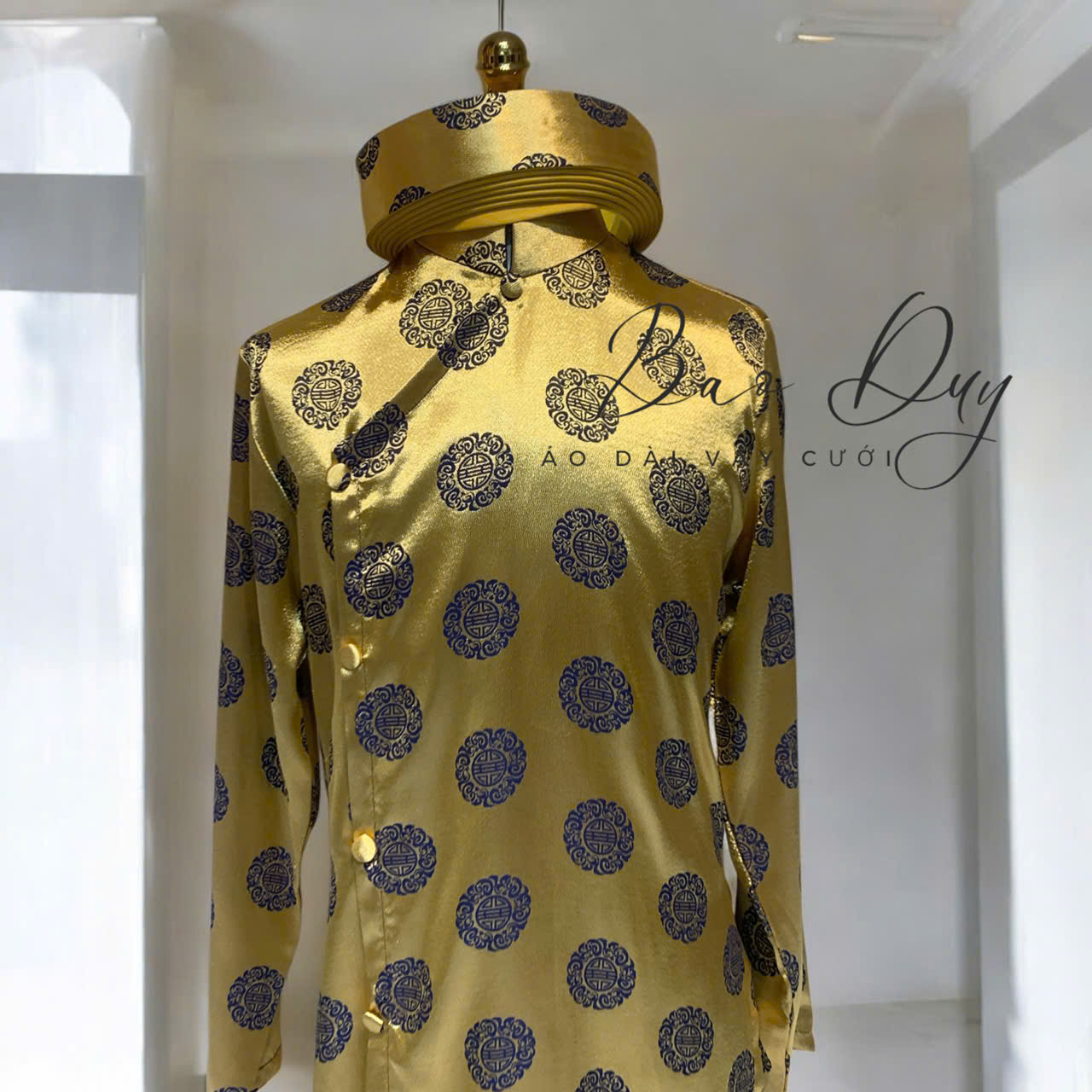 Áo dài nam gấm form vest chất liệu tafta bóng nhẹ form Vest cao cấp
