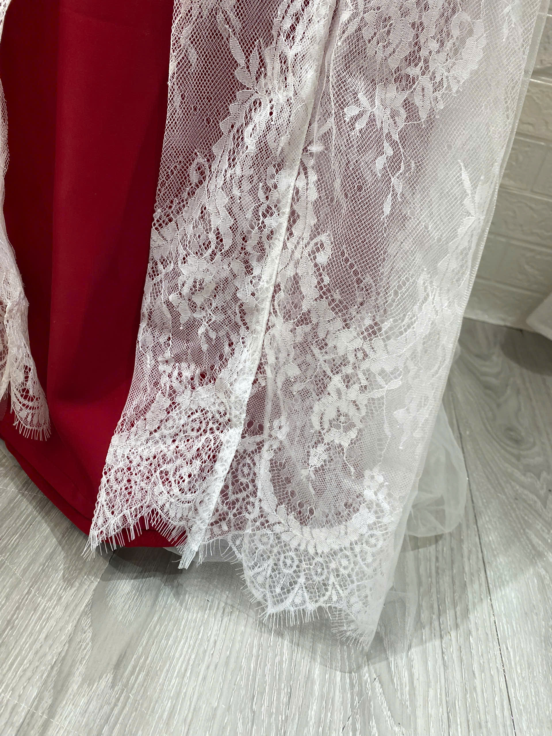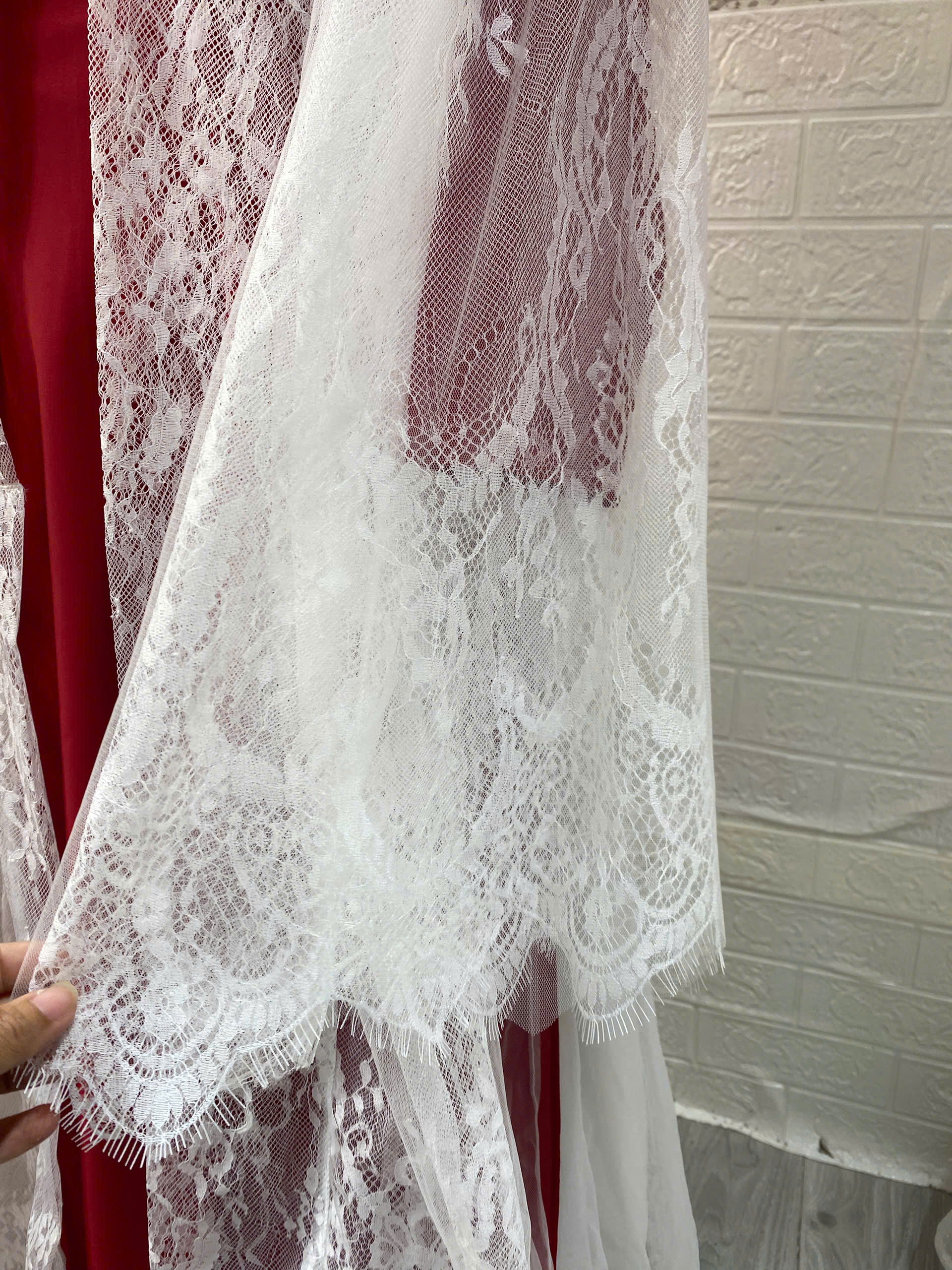 • Chất ren trắng cao cấp, họa tiết mềm mại, đứng form nhưng vẫn nhẹ nhàng