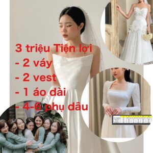 * Gồm 2 váy- 2 vest- 1 áo dài- 6 phụ dâu