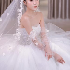 lúp cô dâu viền hoa và ống tay hoa