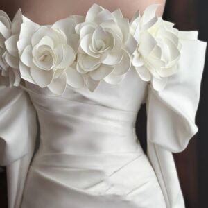 Mô tả: đóng gói gồm 2 ống tay xếp li- mỗi ống tay cài 2 hoa hồng trước + sau (rời) tạo kiểu- chỗ ống tay có khoảng thun nhỏ