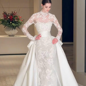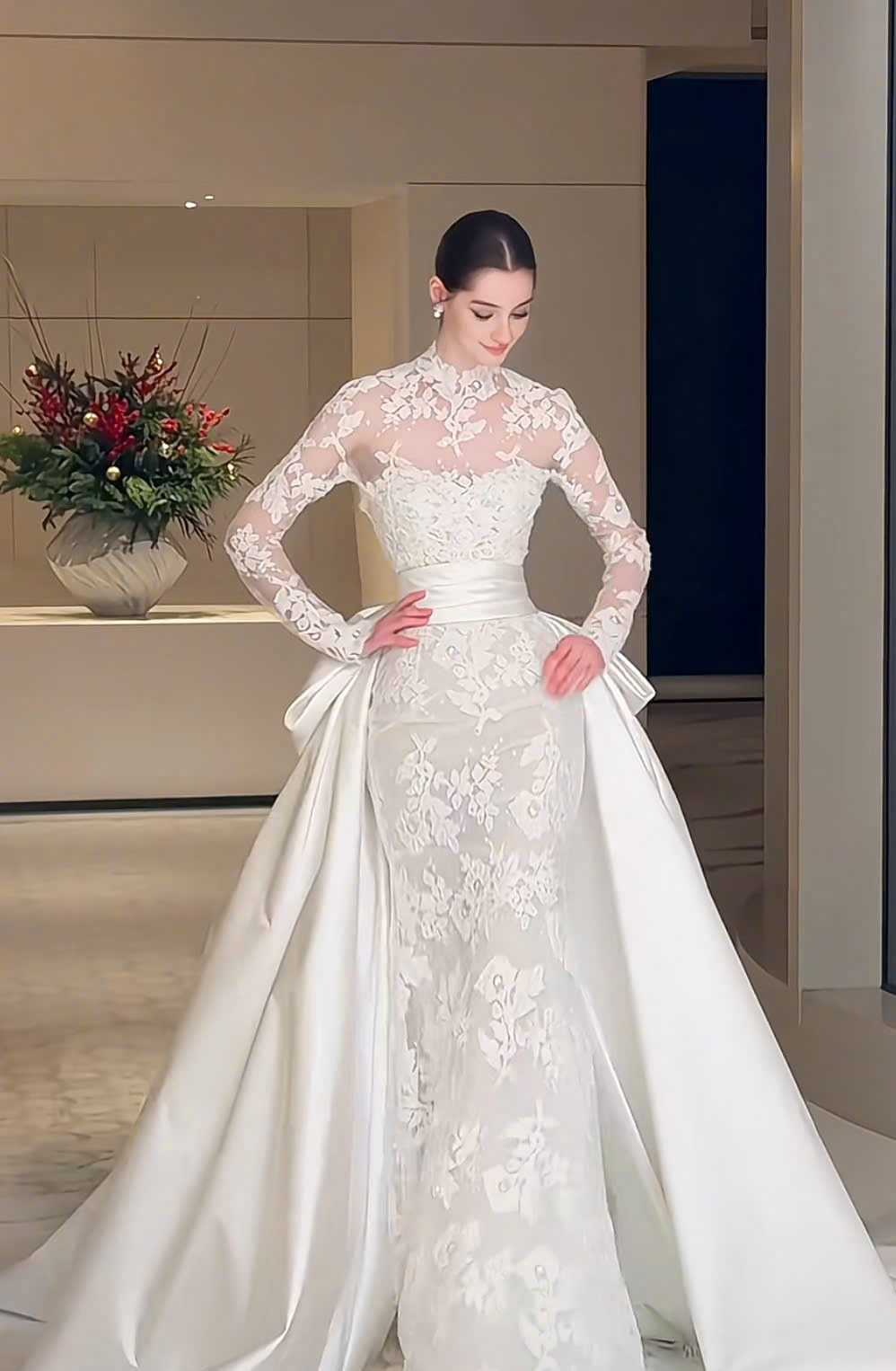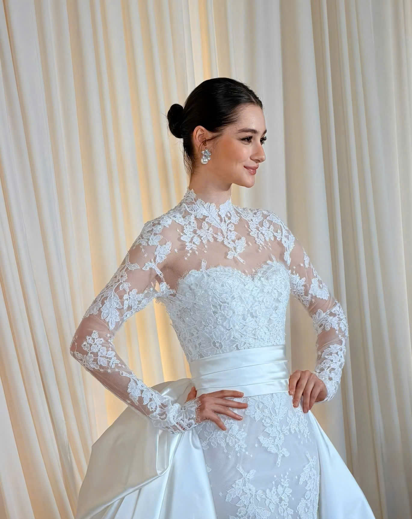 Váy cưới đuôi cá ren cổ cao tay dài – kiêu sa trong từng ánh nhìn