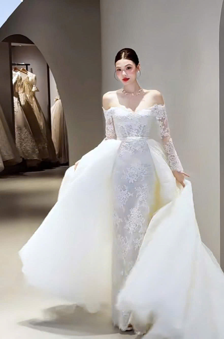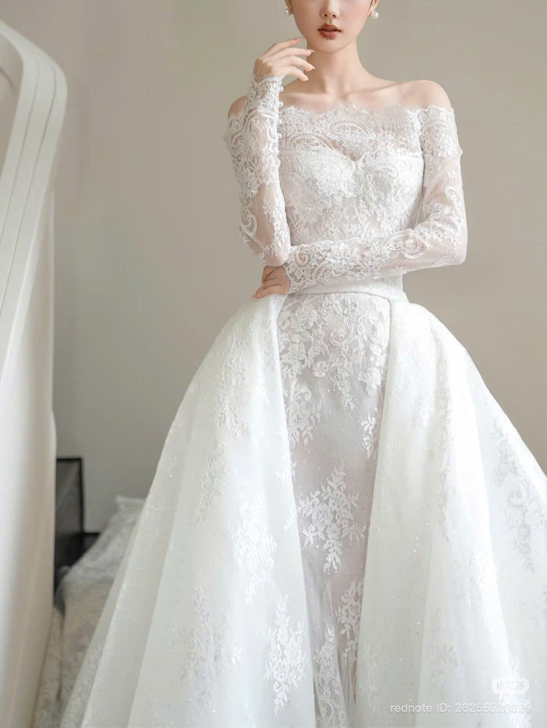 Năm nay, các nàng dâu đặc biệt yêu thích váy cưới chất liệu ren – biểu tượng của sự tinh tế và quyến rũ. Váy ren đòi hỏi kỹ thuật may cao cấp, form chuẩn và khâu định hình tỉ mỉ, giúp tôn dáng và mang lại cảm giác sang trọng cho cô dâu trong ngày trọng đại.