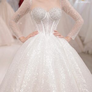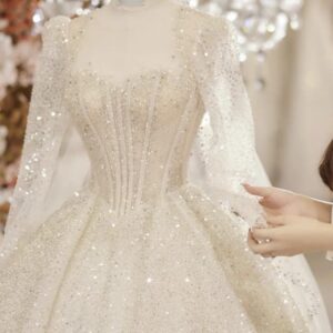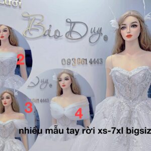 Nếu bạn có vóc dáng XL,XXL đến 7XL, …. muốn tìm một chiếc váy cưới bigsize tay nữ hoàng, tay công chúa (tay lồng đèn) tay dài.