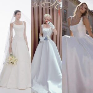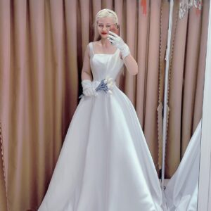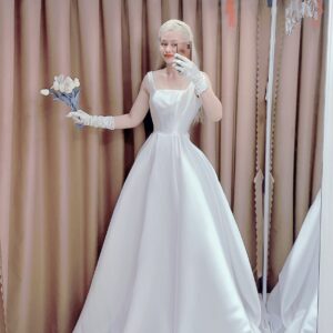 Váy cưới cổ vuông sát nách 2 dây phong cách Châu Âu- Hong Kong