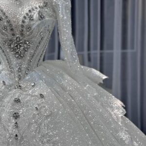 Hãy là người đầu tiên nhận xét “Váy cưới làm lễ lấp lánh tay dài cổ cao tùng tầng”