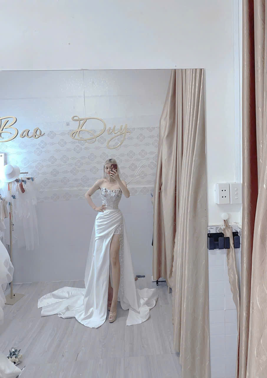 * Biến thành váy ngắn trẻ trung: Sau khi tháo đuôi, cô dâu sẽ có ngay một chiếc váy ngắn đầy cá tính, phù hợp với tiệc cưới, tiệc tối hoặc buổi chụp ảnh dạo phố.