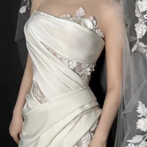 Loại chia theo đính kết, chất liệu: đính hạt ngọc, đính hoa rơi, đính chân ren viền, đính hoa voan
