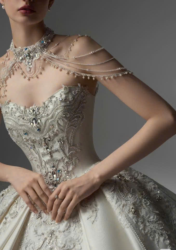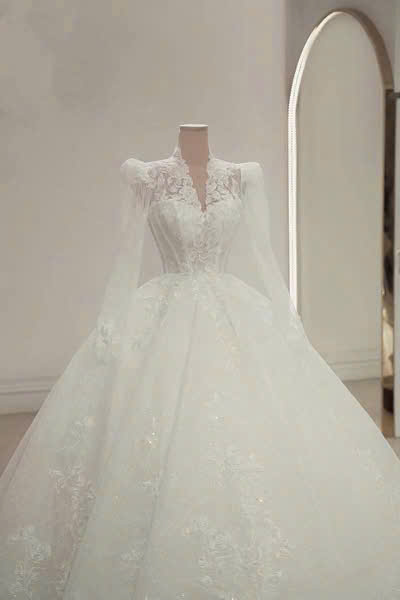 Váy cưới tay dài cổ cao