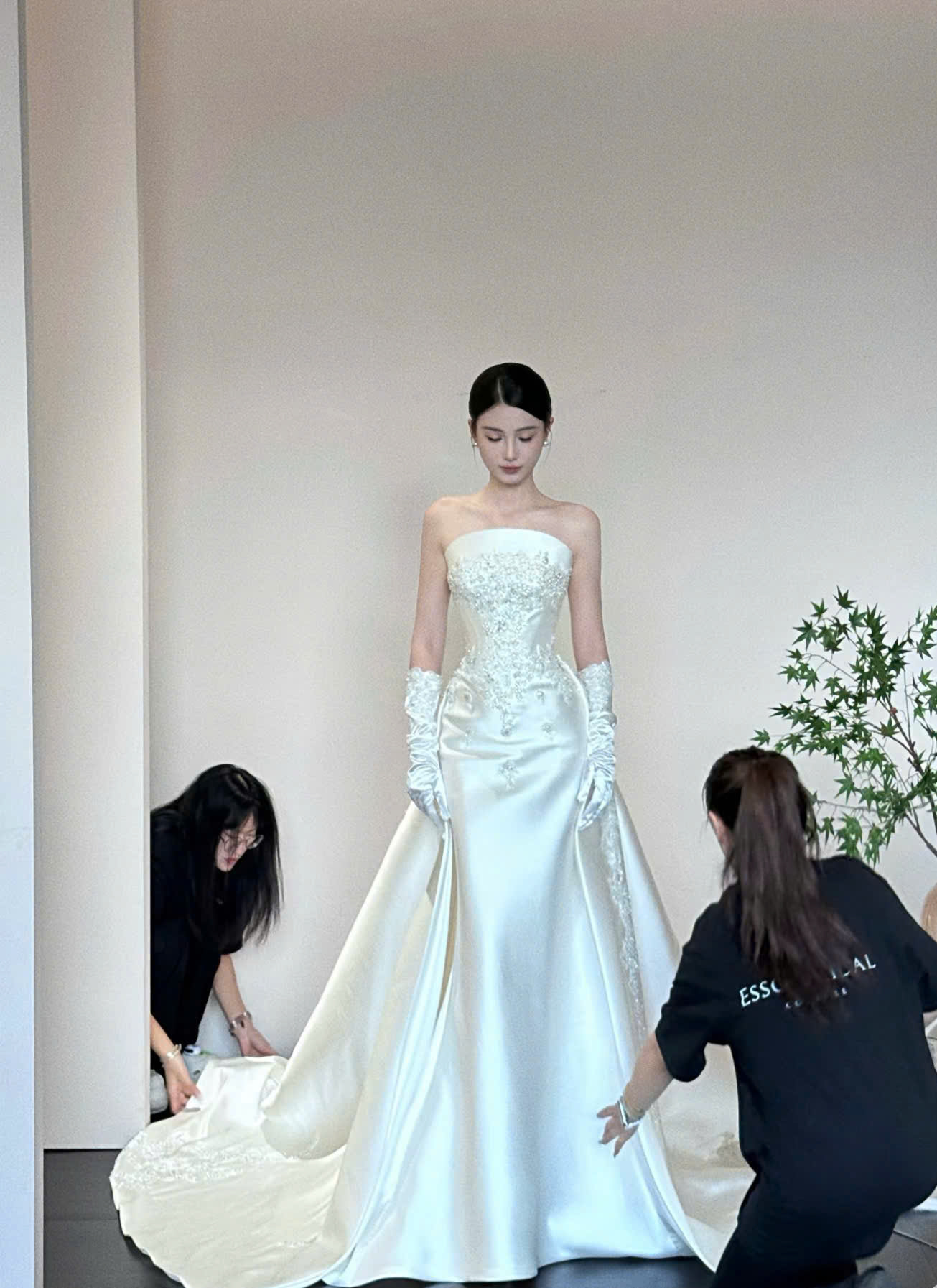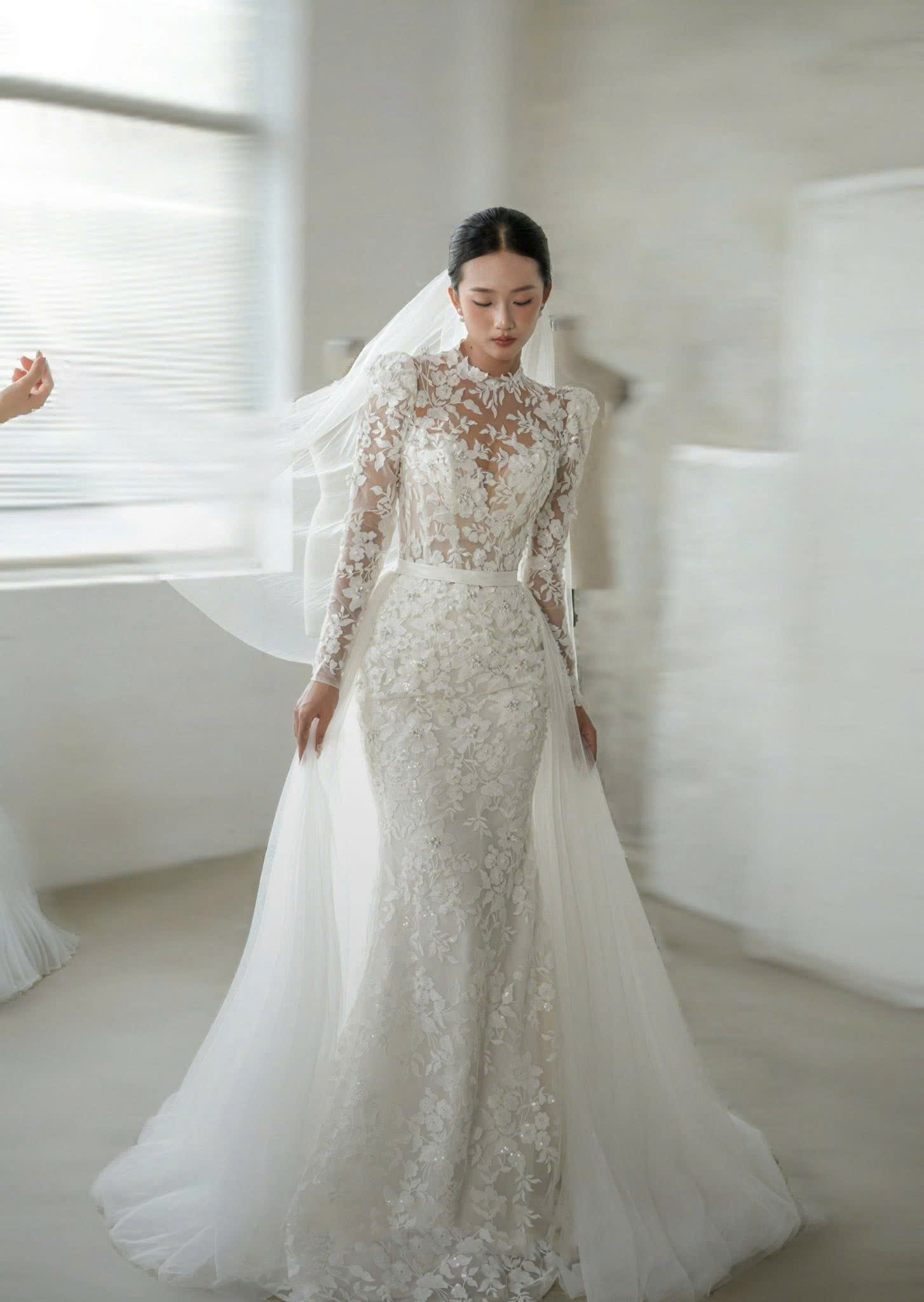 Form váy được xử lý định hình khéo léo, giúp cô dâu tự tin di chuyển – tạo dáng chụp ảnh – tỏa sáng trong mọi khoảnh khắc.